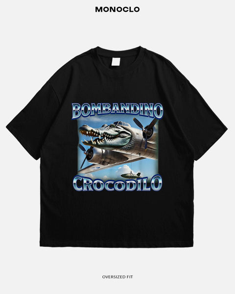 Стильна та енергійна футболка Monoclo з принтом "Bombardino Crocodilo", що розташований на передній частині футболки, поєднує у собі неповторний дизайн і сміливі кольори. Принт із зображенням крокодила, що сидить за штурвалом бомбардувальника, уособлює потужність і стиль. Це ідеальний вибір для тих, хто хоче підкреслити свою індивідуальність і не боїться привертати увагу.